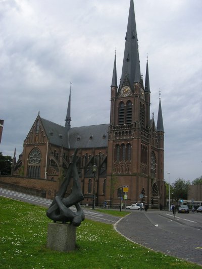 Deze Rooms-Katholieke kerk is onlangs gerestaureerd en ziet er van binnen nog mooier uit dan de buitenkant doet vermoeden. Ik (Sjoerd) kende de kerk al een beetje door mijn activiteiten als secretaris van het Beraad van Kerken van Woerden, maar omdat Annelies van huis uit Rooms-Katholiek is komen we de laatste tijd ook vaker in deze kerk. Voor mij is het belangrijk dat Bert van Kooten als Pastor onze dienst leidt - hij vertegenwoordigde de RK parochie in het Beraad van Kerken en daardoor ken ik hem al jaren lang.
